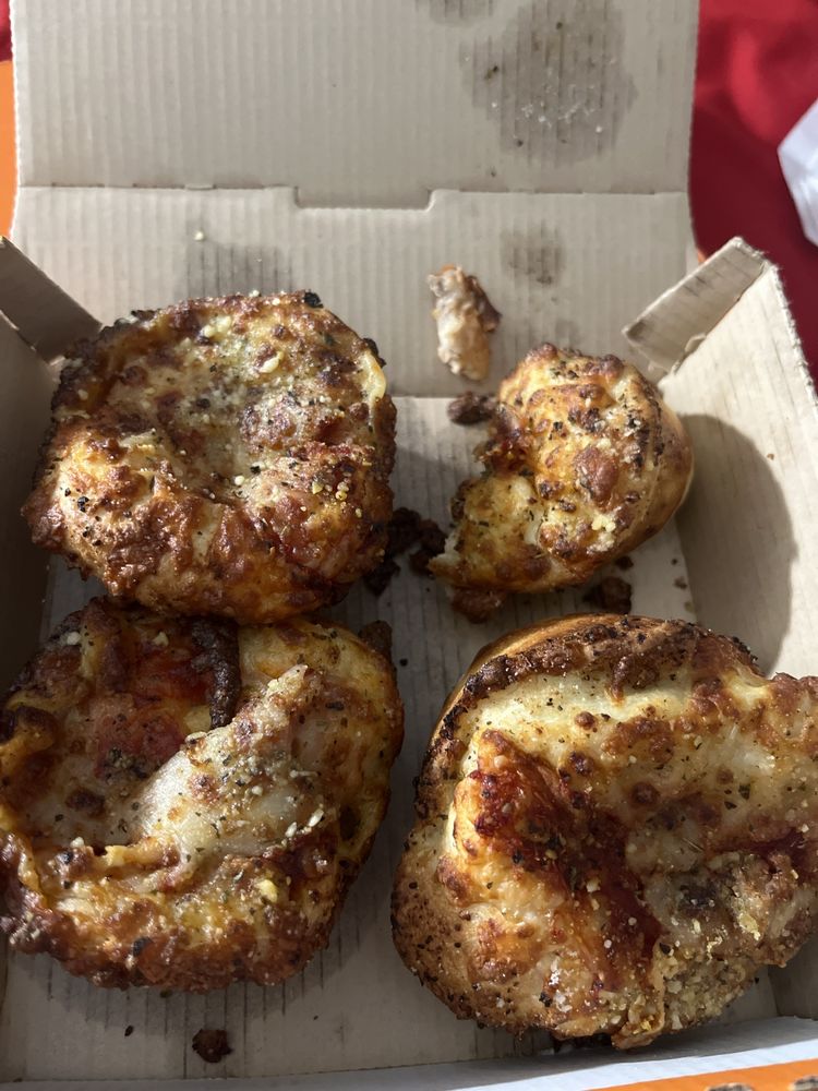 Ten pieces of freshly baked bread with a crispy edge, covered with cheese and topped with Italian spices (1340 Cal)