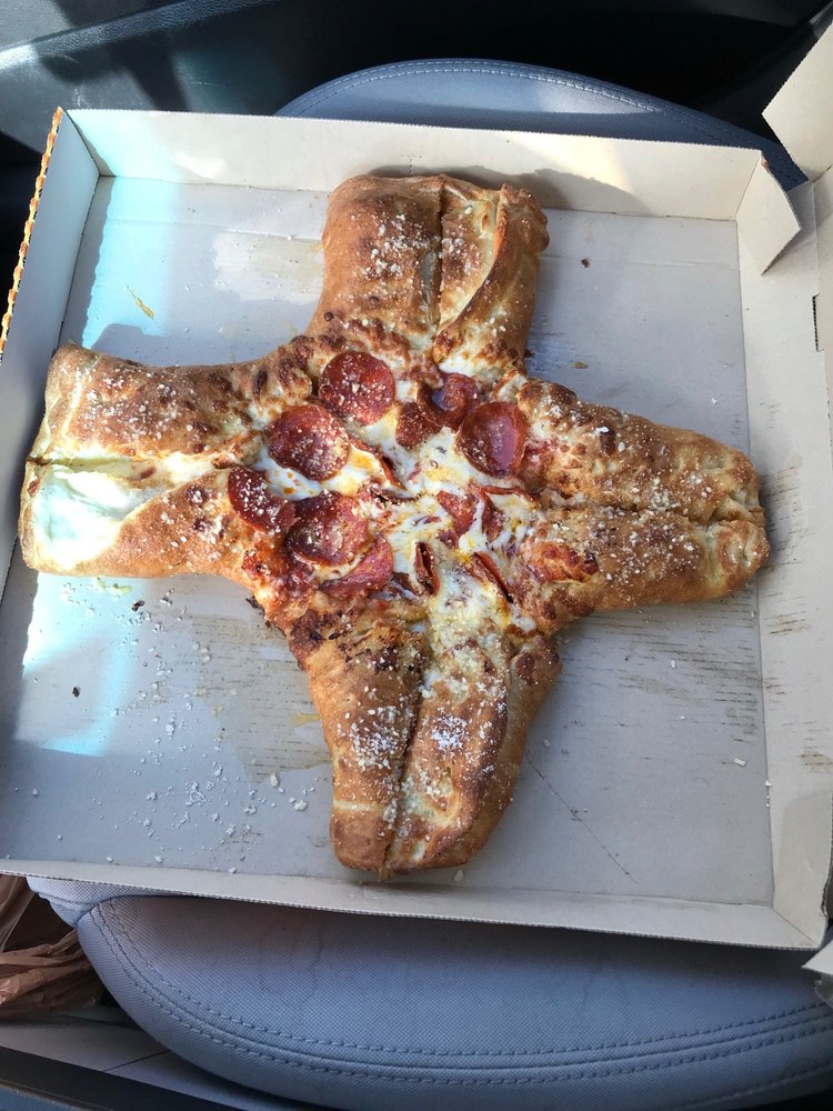 Four slices of Pepperoni pizza combined with eight Italian Cheese Stix topped with Jalapeno, plus Crazy Sauce